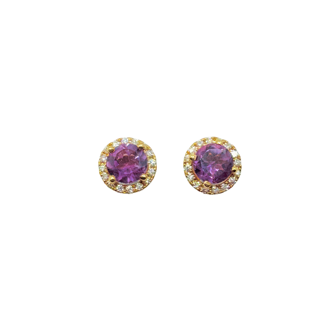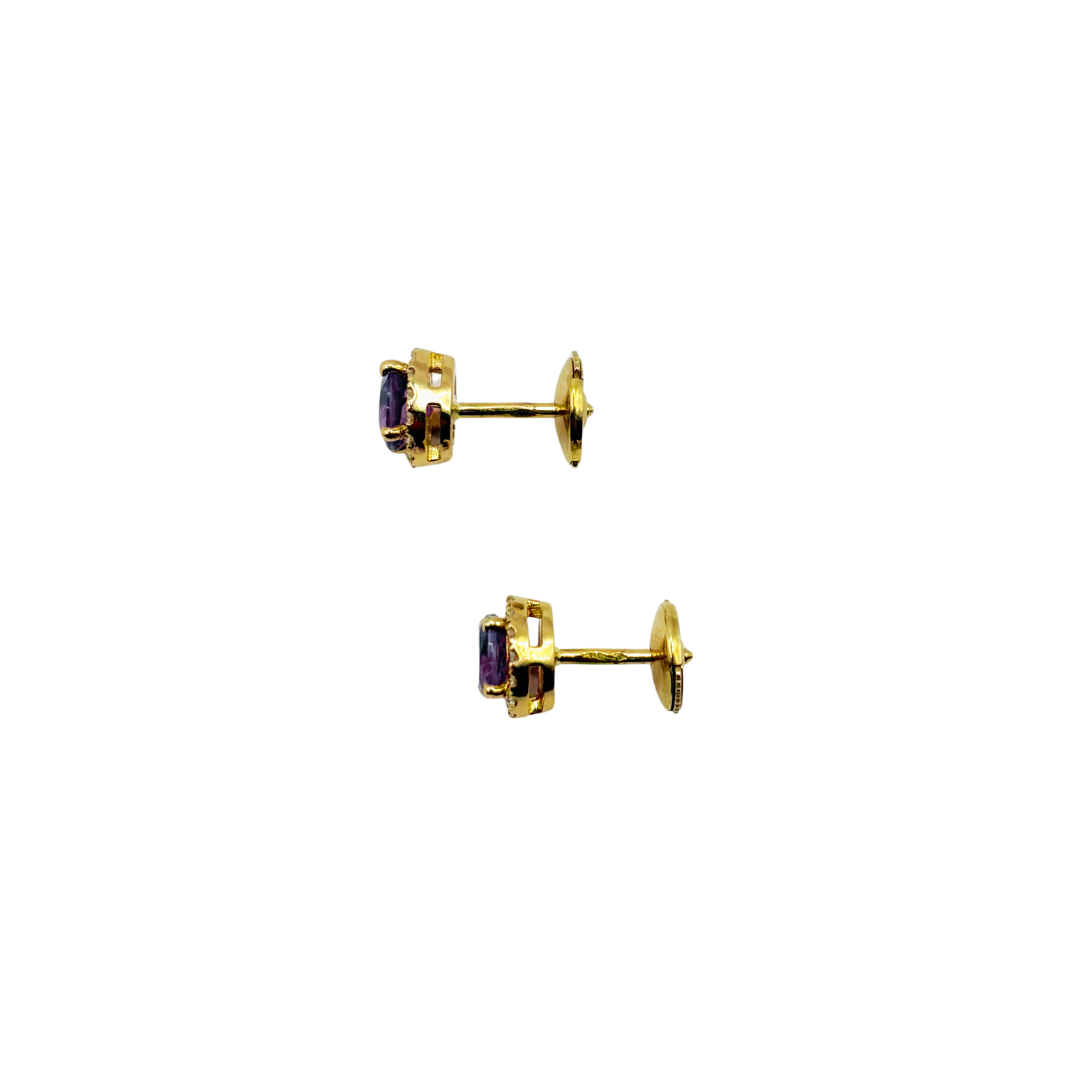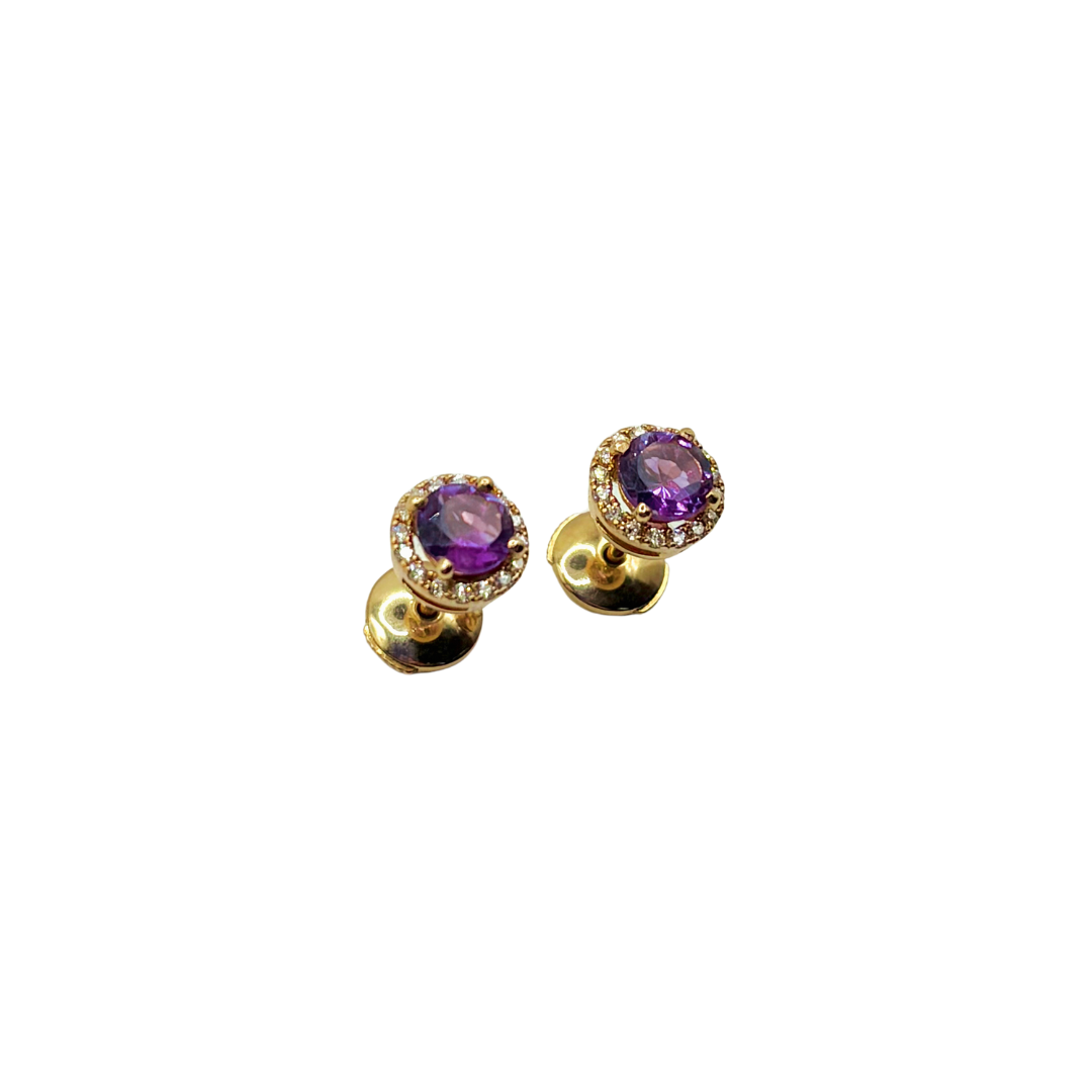 Boucles D'oreilles Vintage - Or Jaune 750 Améthystes & Diamants