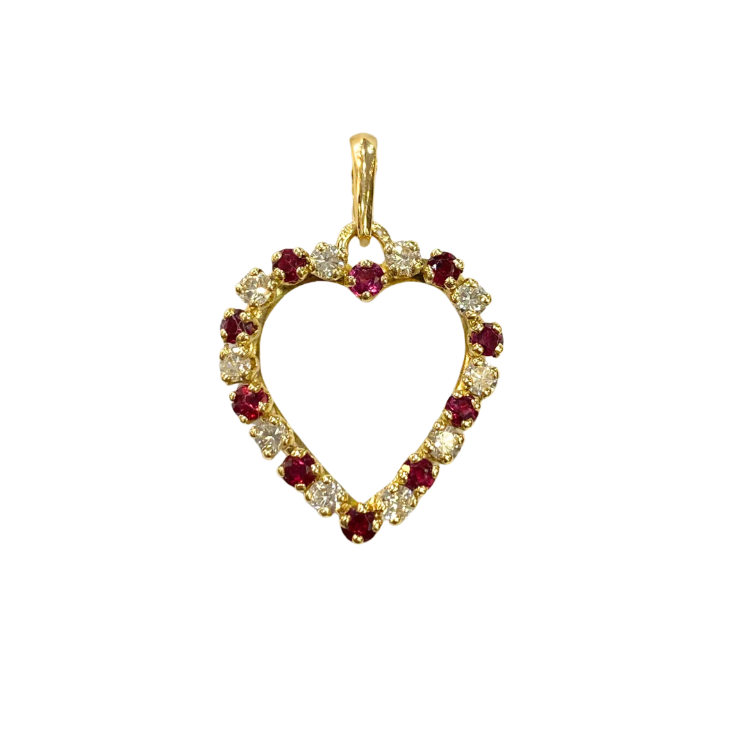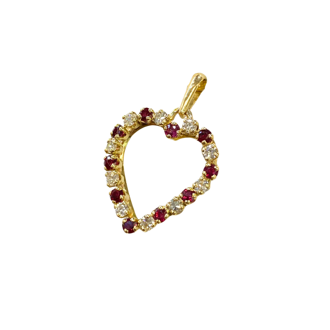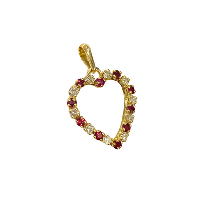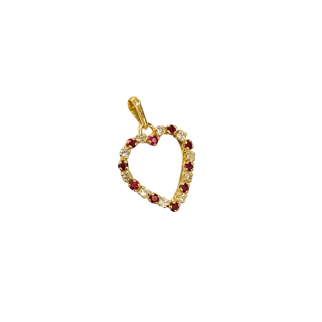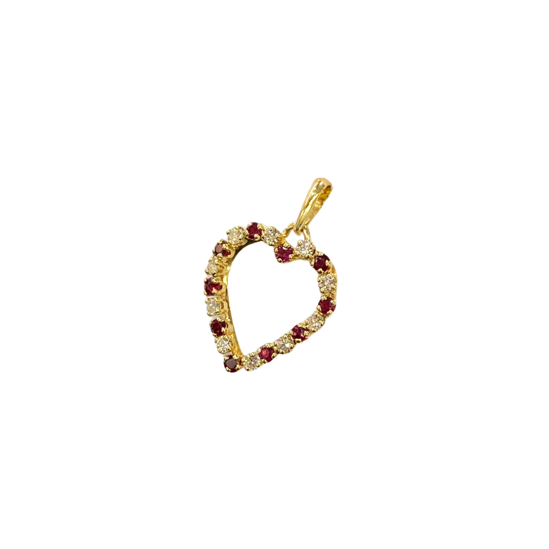 Pendentif Coeur - Or Jaune 750 Rubis & Diamants